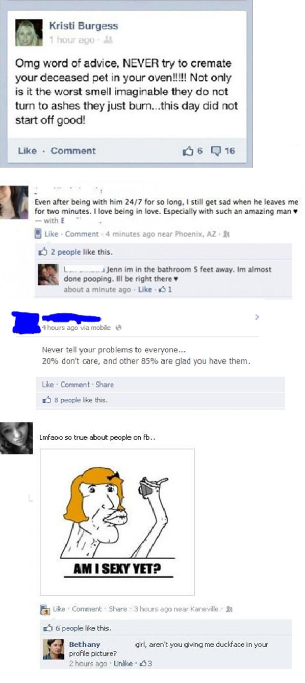 6) Participei num reality show: Tucha. Em várias conversas ela já tem demonstrado um grande conhecimento acerca de como agir em reality shows, e de participantes. Por isso acredito que tenha participado nalgum reality show de Angola ou algo do género, visto ela não ser de cá..